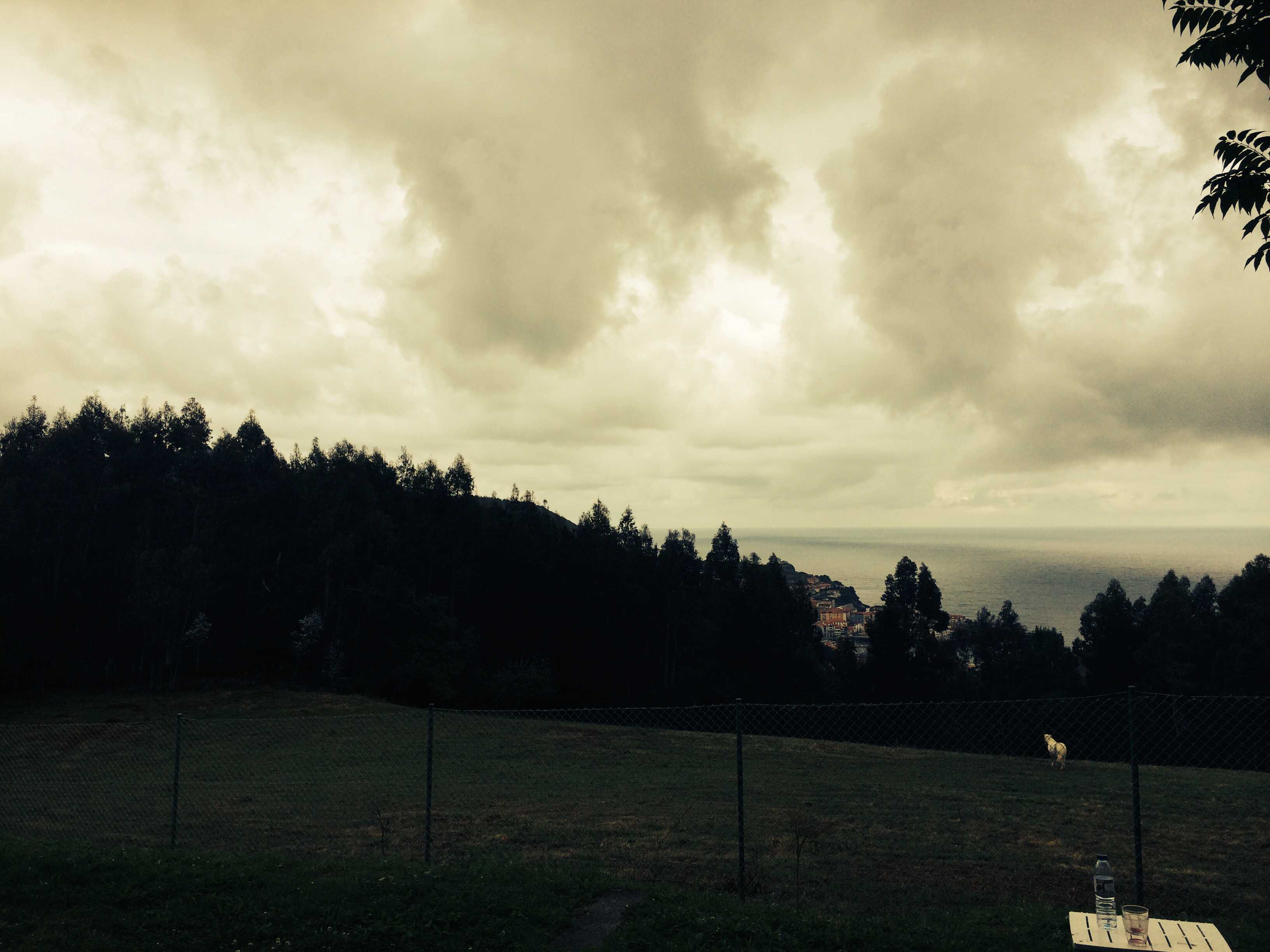 O Boże, gdyby mi się chciało jak jak mi się nie chce … Jak, trudno rozruszać się po dniu odpoczynku i takiej deszczowej pogodzie… Trochę to zajmuje, ale nie ma że boli , po prostu do przodu. Patrzę na moje posty i jestem przerażony optymizmem zawartym w treści. Dochodzę do wniosku, że to te “hormony szczęścia” produkowane przy jeździe na rowerze zbyt hojnie uzupełniam czekoladą. Jak patrzę na mój humor rano, pakując jeszcze trochę mokre a na pewno lekko stęchłe już rzeczy a przy okazji wyciągając jakiegoś robala z mojego ucha obcążkami bo śrubokręt nie wystarczał, to aż się dziwię, że mogę być tak radosny z wieczora. Poniżej jak co rano deszczowe chmury nad hiszpańskim wybrzeżem i otaczającymi górami :
