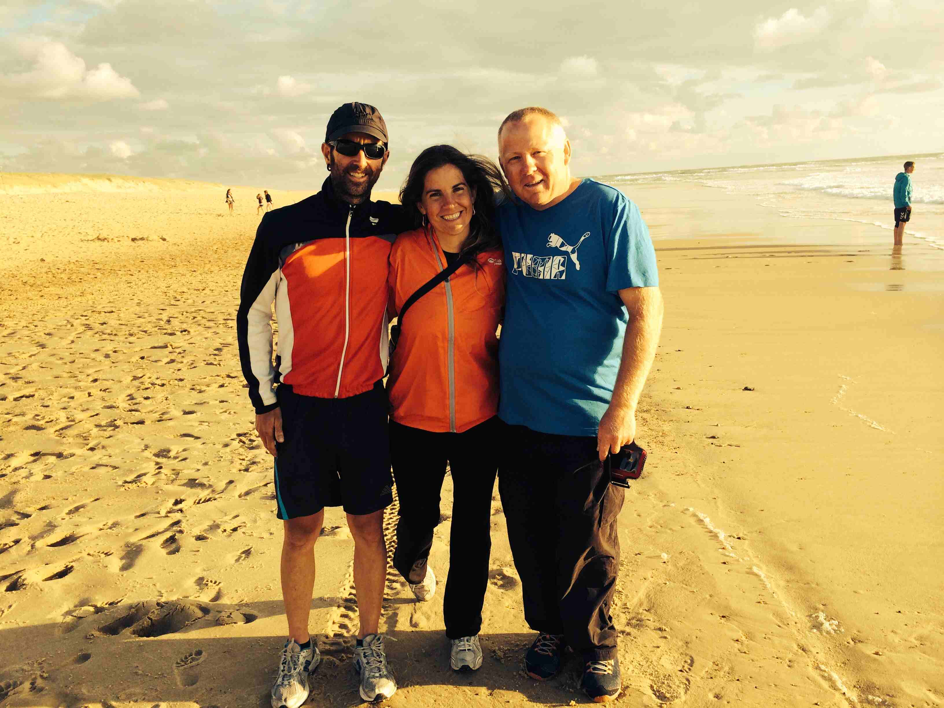Na parkingu odnalazłem przyjaciół Baskijczyków z Hiszpanii, którzy dwa dni wcześniej wyruszyli z Bordeaux. Była nieskończona kombinacji kempingów, dróg itd aby się nie spotkać a jednak los się do nas uśmiechnął. To pewnie w nagrodę, bo nie dość , że pokonałem przeszkody stawiane przez Neptuna to jeszcze wymagało to przejechania 140 km… Tak, tak  140 km z palcem w pośladkach – po dodaniu powietrza do kół.